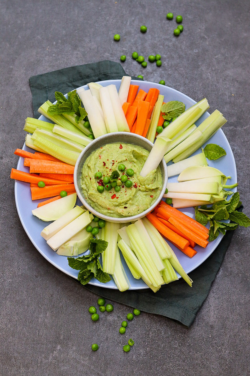 Ein warmer Frühlingstag, ein Picknick im Grünen oder einfach eine kleine Auszeit vom Alltag – manchmal braucht es nur eine leichte, frische Kleinigkeit, um den Moment perfekt zu machen. Dieser cremige Erbsendip mit frischem Gemüse ist genau das Richtige! Die feine Süße der Erbsen, kombiniert mit milden Cannellini-Bohnen und einem Hauch Minze, sorgt für eine herrlich frische Note. Zusammen mit knackigen Gemüsesticks wird daraus ein leichter, gesunder Snack, der sich perfekt für zwischendurch oder als Vorspeise eignet. Schnell gemacht und voller wertvoller Nährstoffe – ideal für alle, die es unkompliziert und lecker mögen!