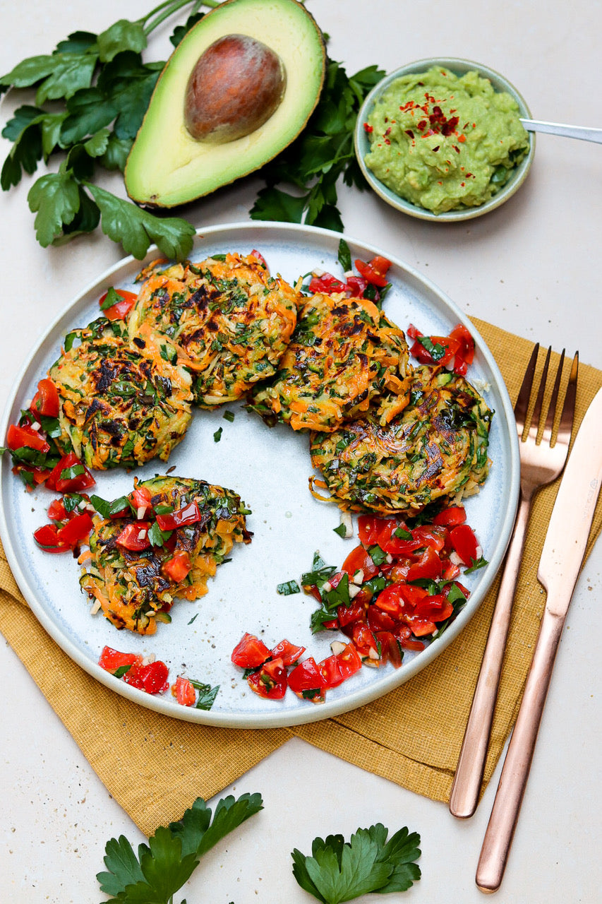 Knusprig lecker! Unsere Gemüserösti mit Tomatensalsa und Guacamole sind ein echtes Highlight für alle, die leichte, nährstoffreiche Küche lieben.