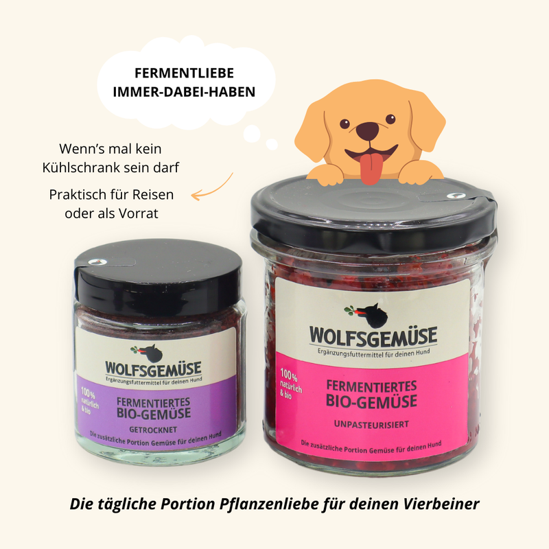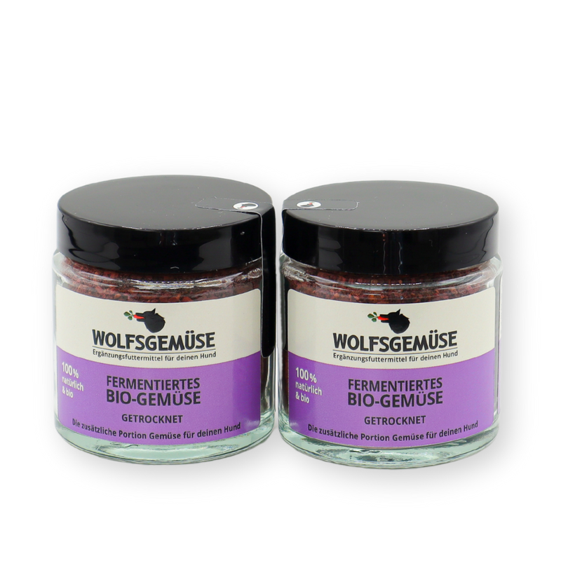 Wir verwenden ausschließlich Bio-Gemüse, das zu 100% natürlich, heimisch und frisch verarbeitet ist, um lebendige Gemüsesorten in bester Qualität zu bieten. Unsere Produkte sind fermentiert und schonend getrocknet. Da das Gemüse im Futter fermentiert ist, erhält es alle Vorteile von fermentierten Lebensmitteln, die das Wohlbefinden deines Hundes unterstützen. Besonders hilfreich ist das Wolfsgemüse bei Futterumstellungen, nach Wurmkuren, bei Allergien und Unverträglichkeiten, nach Antibiotika-Behandlungen, sowie bei Stress und körperlicher Belastung.