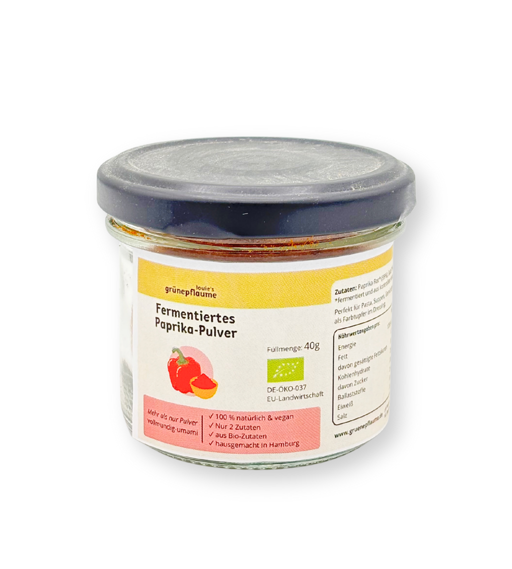 Unser fermentiertes Paprika-Pulver bringt den puren Geschmack reifer Paprika in deine Küche – mild, aromatisch und mit einer feinen Umami-Note durch Fermentation.